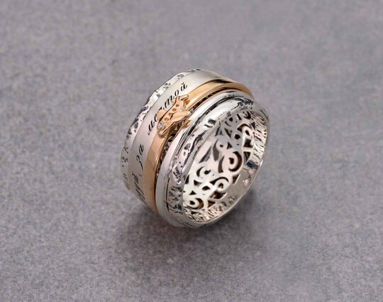 Кольцо из серебра с позолотой и фианитом. На подвижных элементах находятся слова, важные для каждого человека, который хочет чувствовать себя счастливым - "Следуй за мечтой".